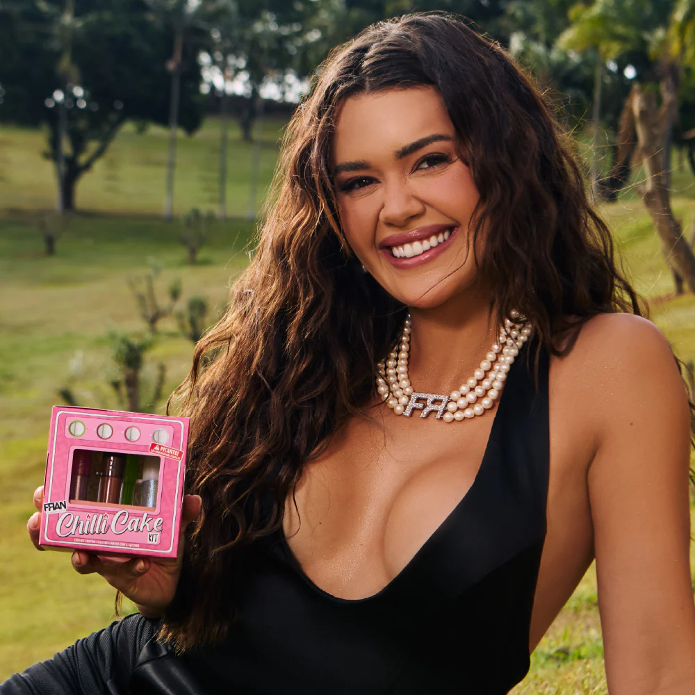 O Kit gloss labial 4 itens Chillicake 3,3g cada | Fran by Franciny Ehlke oferece efeito imediato de aumento labial, com Ácido Hialurônico que garante hidratação intensa, conforto e acabamento glossy. O CHILLI23 é translúcido com brilho holográfico; o PINK CHILLI tem tom rosa suave com brilho intenso; o CHOCOCHILLI traz um tom quente e sofisticado; e o GREENCHILLI, verde na embalagem, revela um rosado exclusivo ao reagir ao pH dos lábios.